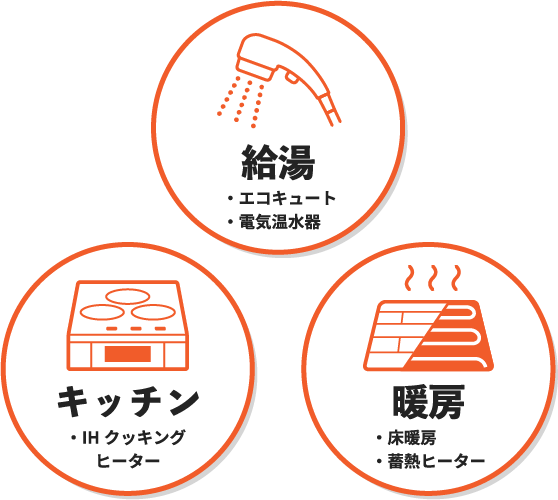 ガスを使用しませんので、基本料金を電気に一本化することでコストを節減。エコキュートは電気料金の安い夜間の電気を使用することができるので、夜間に沸かしたお湯を溜めておいて日中に使うことで光熱費を削減することができます。