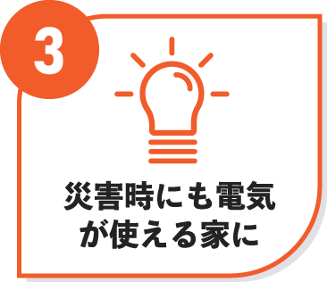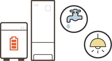 震災時などにストップした電気・ガス・水道といったライフラインの中でも、電気の復旧が一番早く実現します。蓄電池があれば数日間、必要な電力をまかなうことも可能。エコキュートのタンク内の水を生活用水として使うこともこともできます。